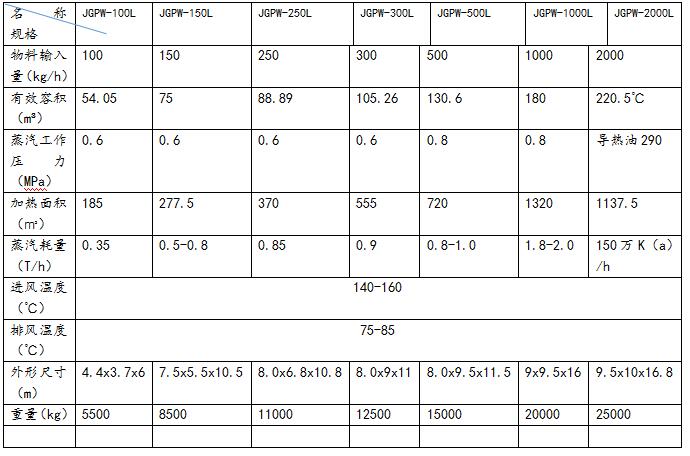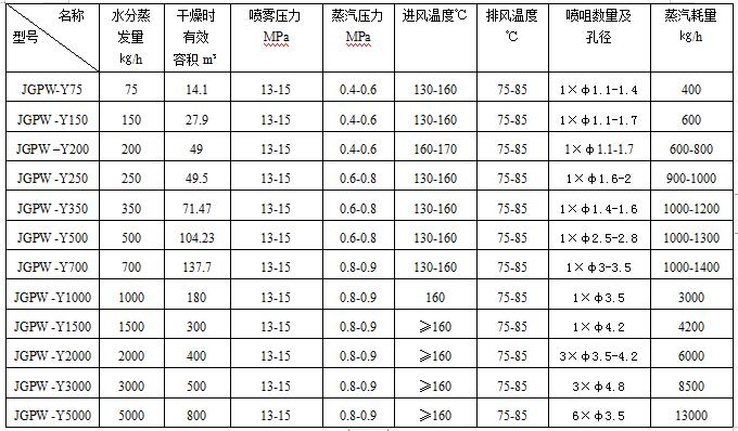 JGPW-L型離心噴霧干燥機(jī)組主要技術(shù)參數(shù)